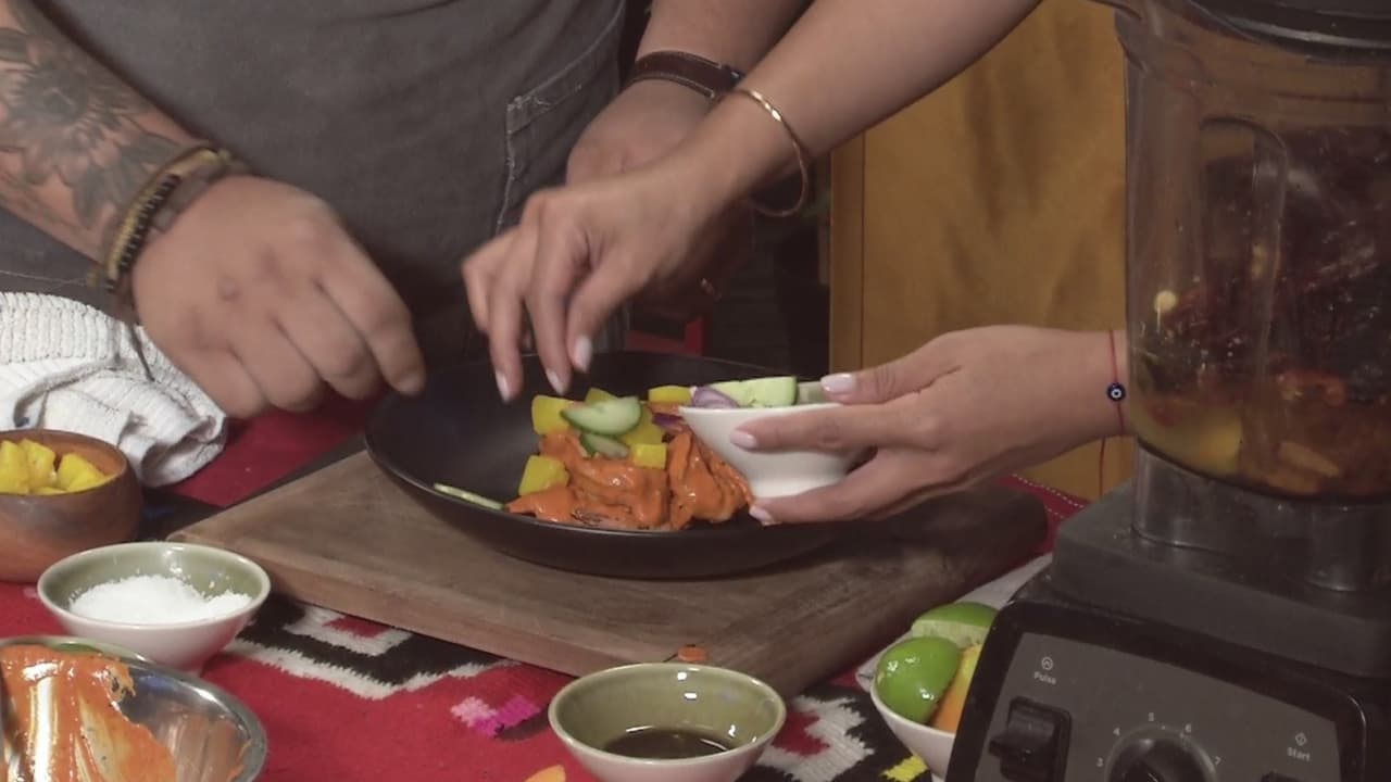 El chef Danny Espinoza y su esposa Jhoana Espinoza explican el paso a paso de esta receta especial. El platillo va acompañado de azúcar de manzanilla y crema batida de fresa.