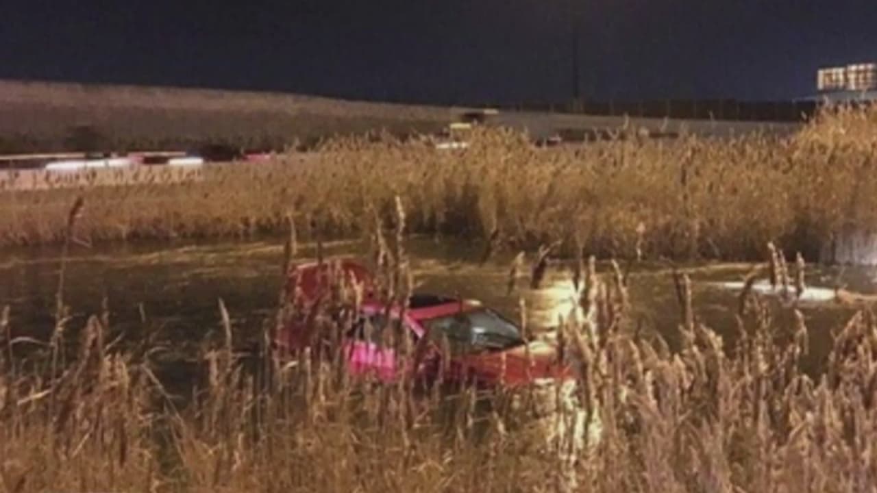 Arrestan a chofer por presuntamente conducir intoxicado luego de que su auto cayera en agua estancada