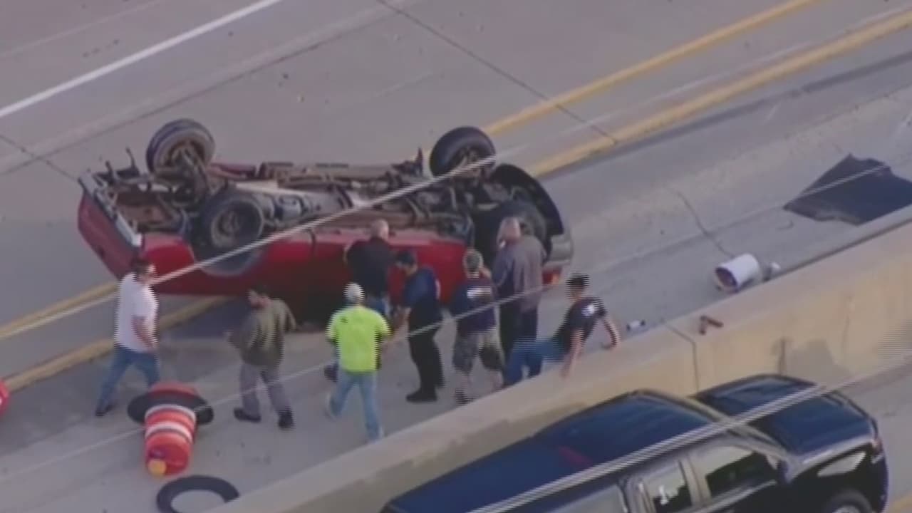 Video Estas personas voltearon una camioneta y rescataron al hombre que se había estrellado en ella