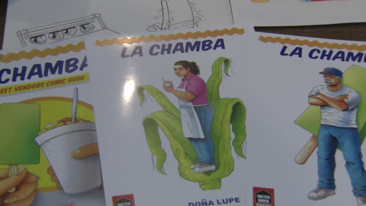 Un hombre de origen hispano rinde tributo a los vendedores ambulantes a través de un libro de cómics