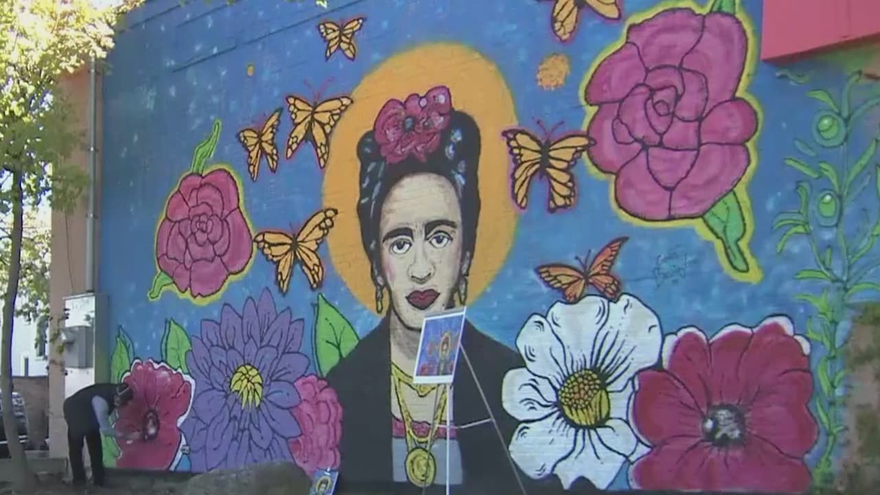 Artista local rinde tributo a Frida Kahlo pintando un mural de ella en el suburbio de Glen Ellyn