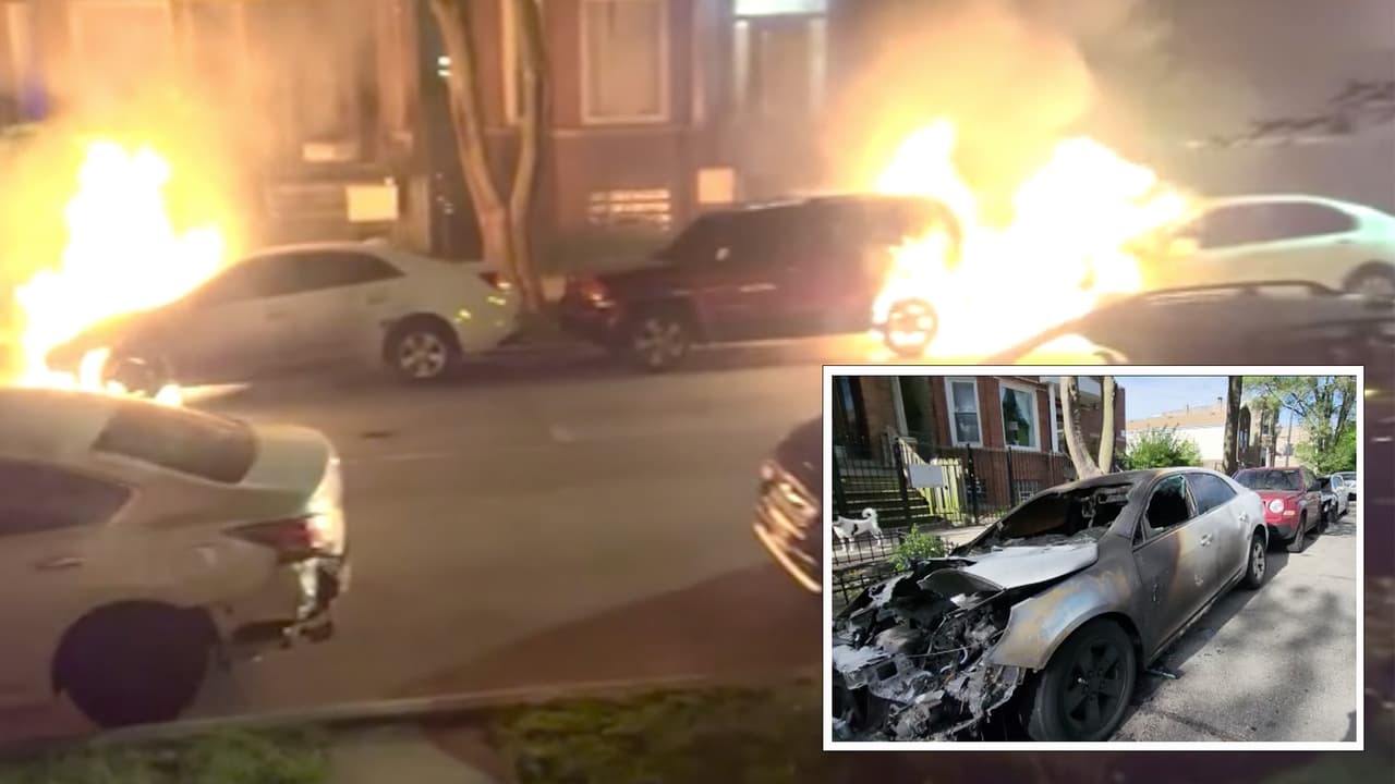 Así ardieron los cuatro autos en Humboldt Park tras la explosión