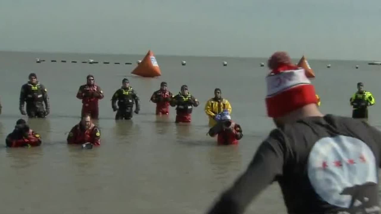 Así fue el tradicional chapuzón polar en las frías aguas del Lago Míchigan