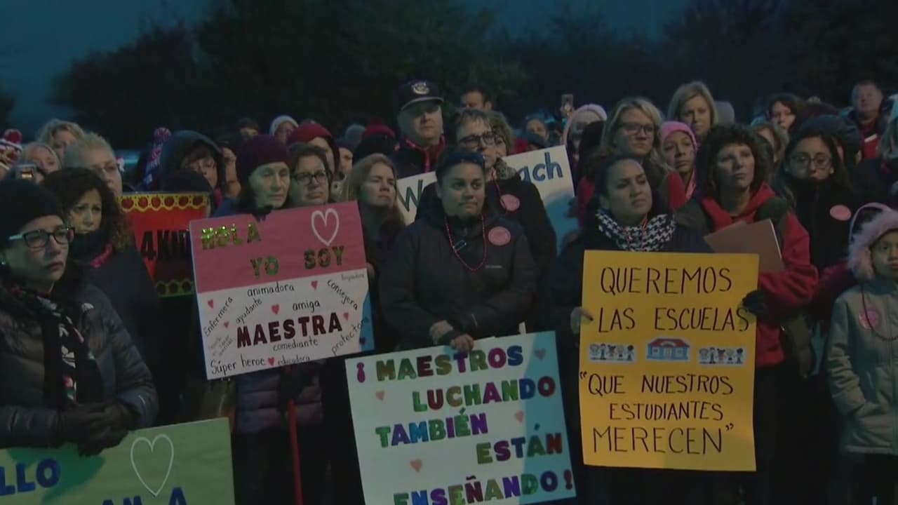 Asociación de maestros del suburbio de Addison realiza una manifestación para pedir contratos justos