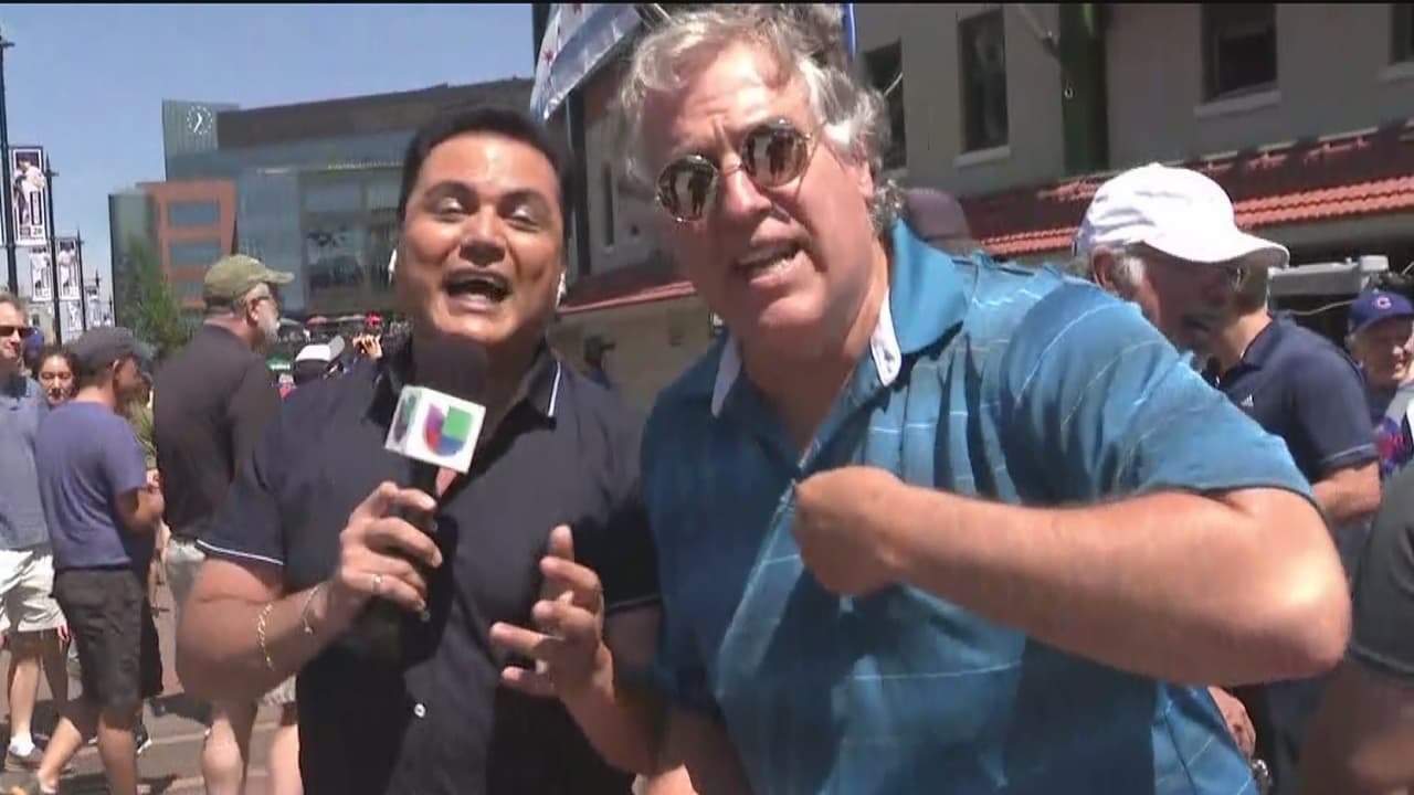 Cientos de personas se preparan para el esperado encuentro mientras comparten un agradable rato con Aureliano Salgado en Wrigleyville.