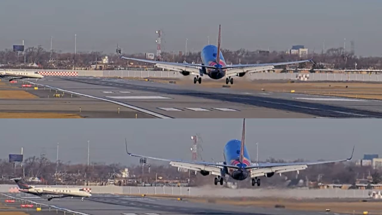 A las 8:48 de la mañana, imágenes muestran al avión de Southwest durante su aterrizaje; de repente la nave vuelve a tomar el vuelo y se ve a un jet en la pista de aterrizaje, en la misma dirección de la aeronave.