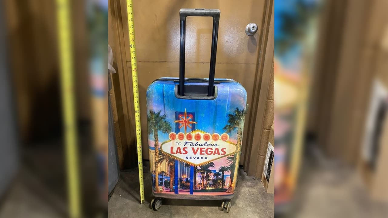 Sobre la maleta, se especificó que se trata de una valija rígida, con imágenes de Las Vegas en el frente y el reverso.
