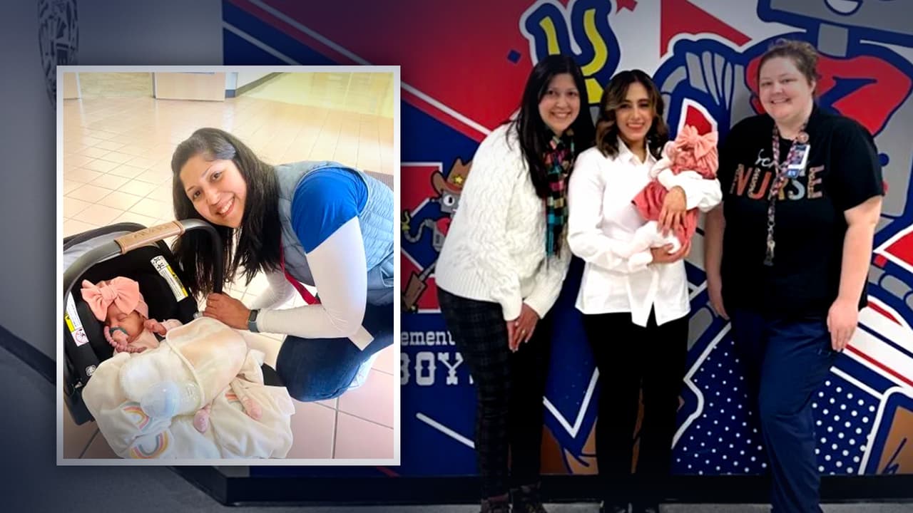 Después de llamar a los paramédicos, la inmigrante hispana y la enfermera sin experiencia en partos le dieron la bienvenida a Leire Carcamo, que nació en la oficina de la enfermería de Kleberg Elementary School.