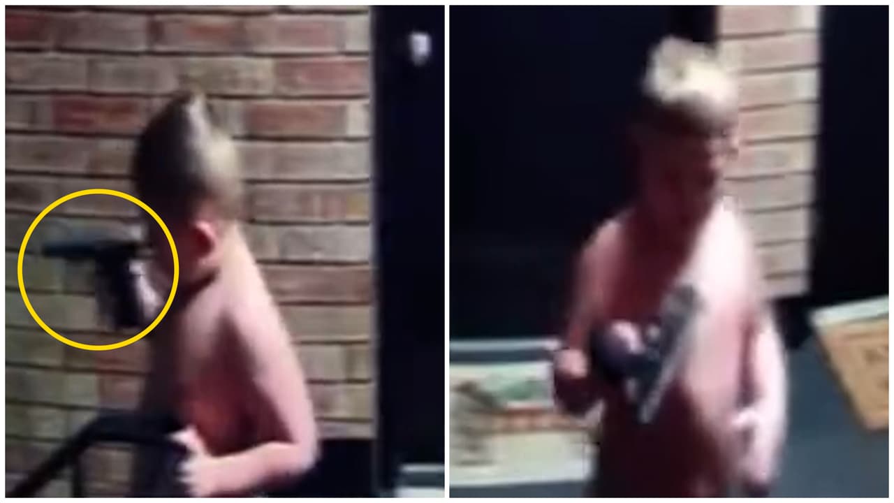 Una cámara de seguridad grabó a un niño de 4 años con una pistola 9 milímetros cargada mientras la sacudía en un complejo de apartamentos de Beech Grove, Indiana, por lo que el padre, identificado como Shane Osborne, fue detenido.