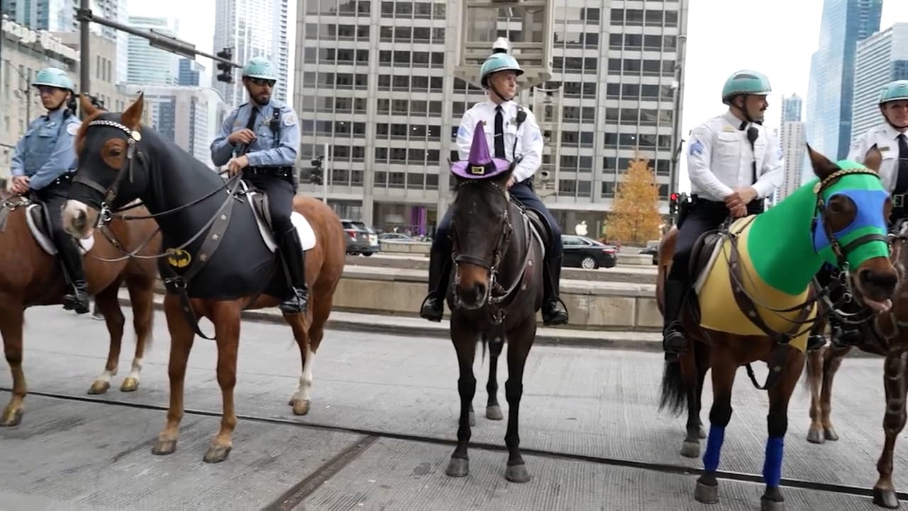 La Policía Montada de Chicago disfrazó a caballos para celebrar el Halloween de este año en Chicago. Algunos llevaban gorros, y otros máscaras por lo que fueron la sensación entre los habitantes de Chicago que los vieron.