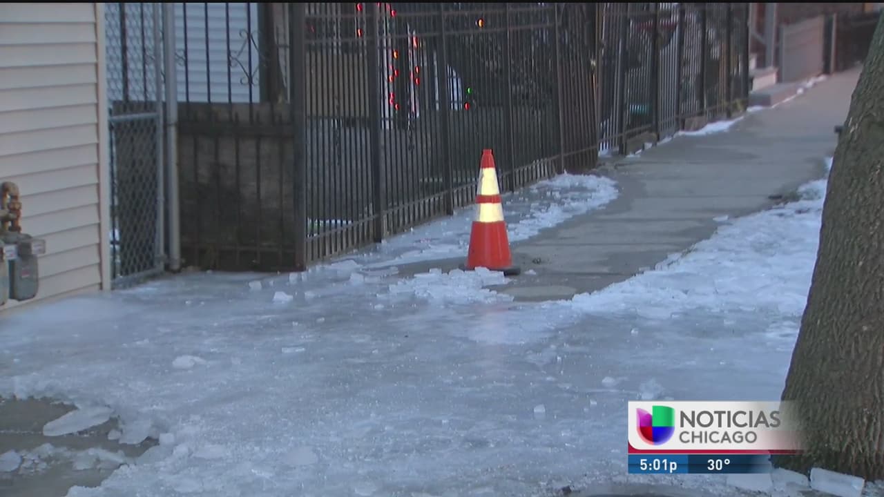 Debido al clima y a la acumulación de agua en el área de La Villita se acumula una peligrosa capa de hielo.