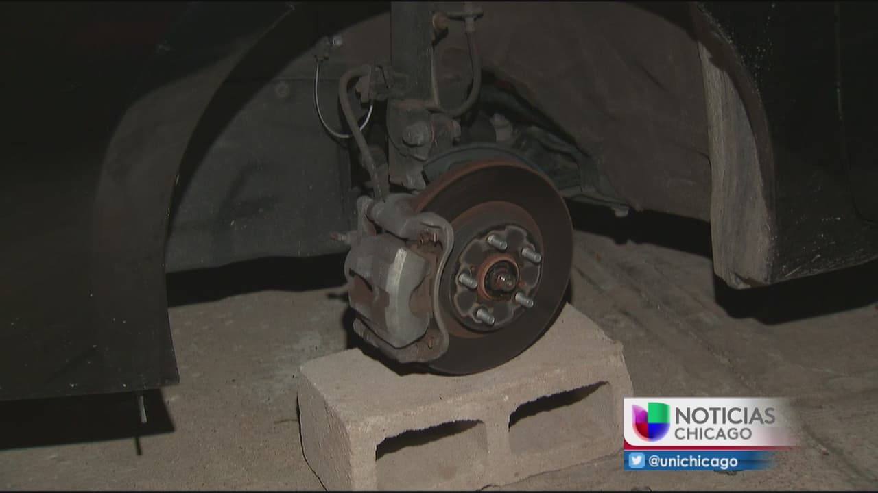 Captan en cámara el robo de las cuatro llantas de un vehículo en Logan Square