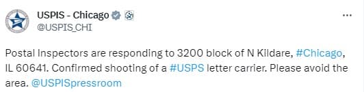 Cartero del Servicio Postal de los Estados Unidos se encuentra en condición crítica luego de un intento de robo en el vecindario de Irving Park.