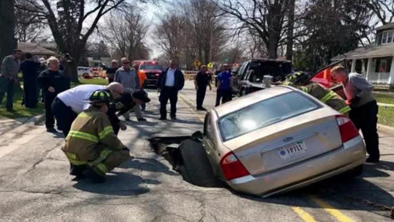 'Chicago en un Minuto': Así quedó un automóvil cuando un socavón se abrió en medio de una calle