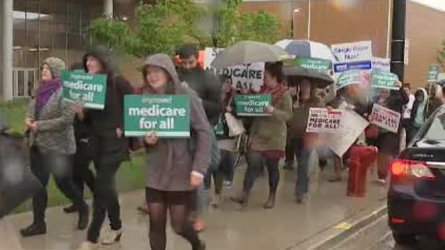 En un minuto te informamos sobre la manifestación organizada por el Consorcio de Medicina Social inició en el colegio Malcolm X y terminó frente al viejo edificio del hospital del condado.