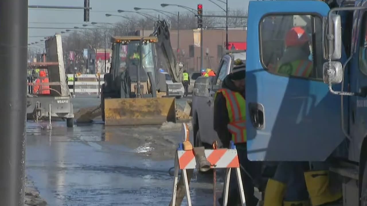 Varios negocios en el barrio de West Lawn se han visto afectados por la ruptura de una tubería de agua potable en Pulaski Road a la altura de la calle 63. Cuadrillas de trabajadores del Departamento de Agua trabajan para restablecer el servicio.