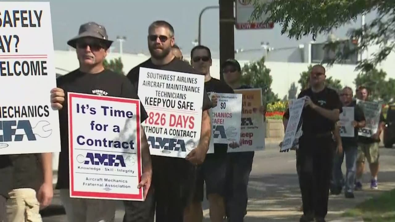 Mecánicos de la aerolínea Southwest, en Chicago, protestan tras cumplir 5 años sin recibir un contrato