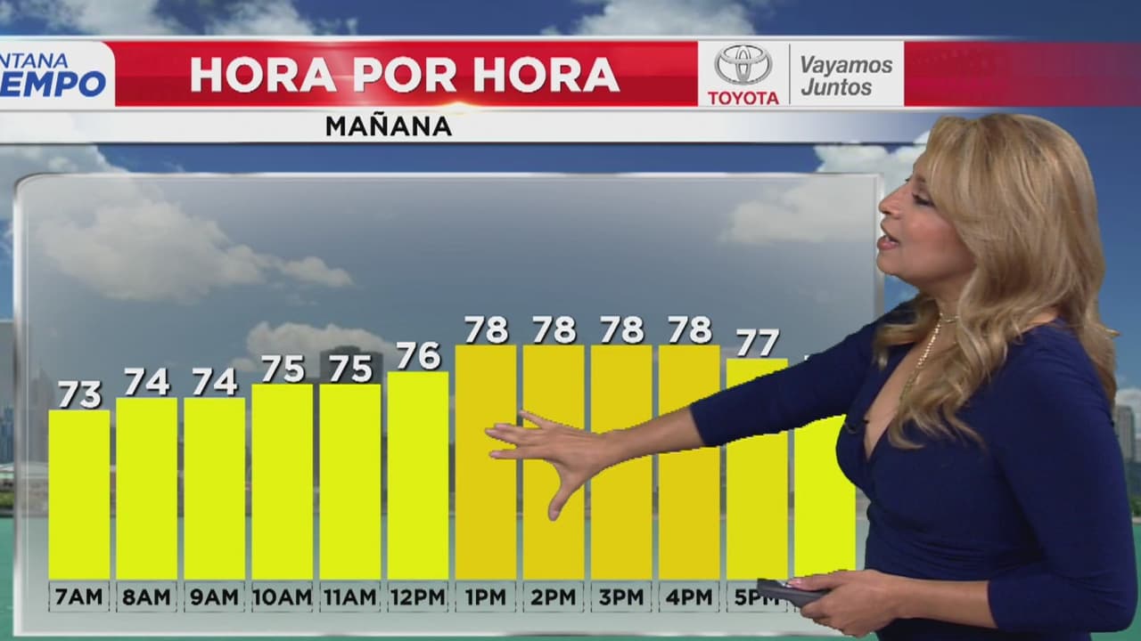 El día amanecerá algo nublado con temperaturas de 73 grados y algunas probabilidades de lluvia. Sobre el mediodía se esperan las máximas de 78 grados que se mantendrán hasta las 5 pm. En la noche las temperaturas descenderán.