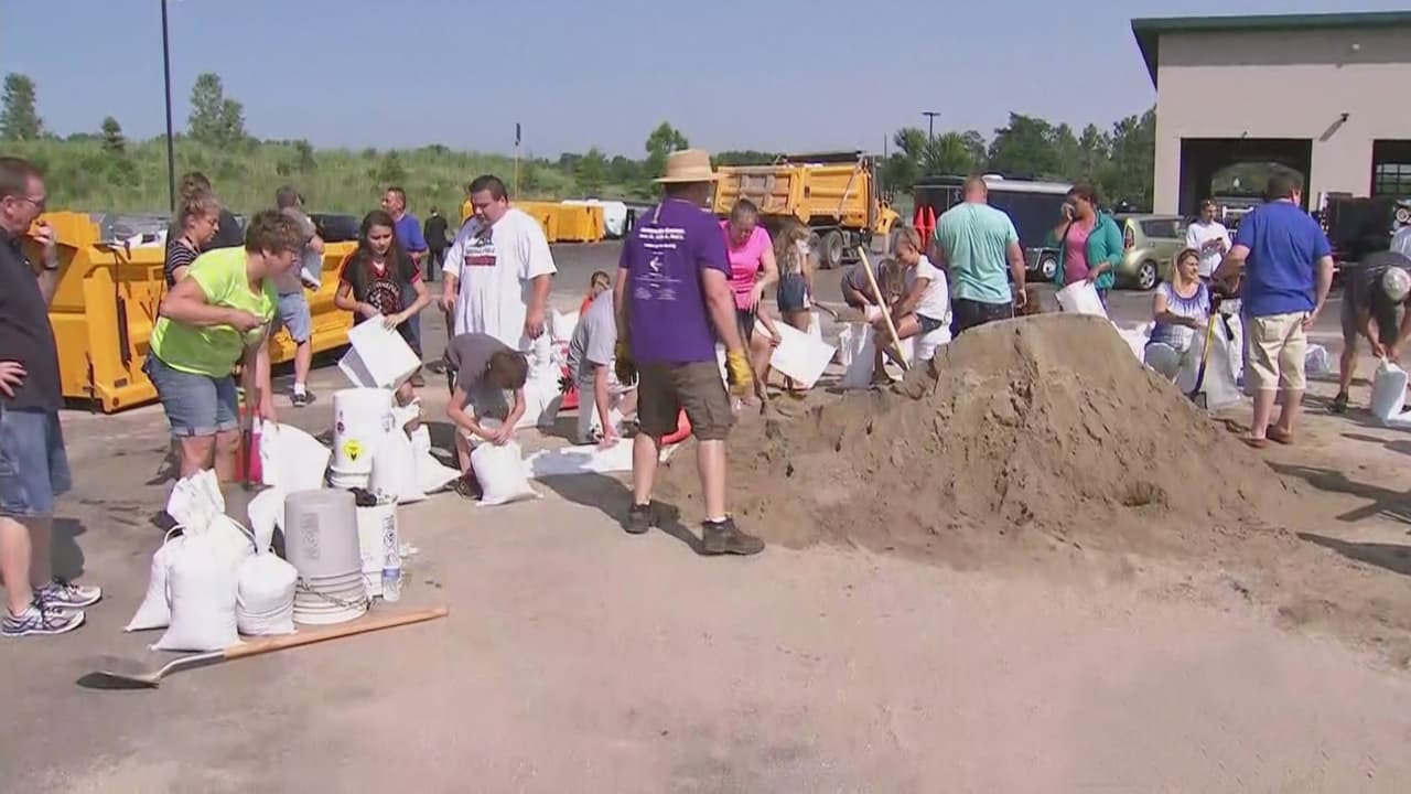 Se espera que el martes el río Fox aumente su nivel de agua hasta las nueve pulgadas. Residentes están colocando barreras de arena alrededor de sus casas para resguardarlas del mal tiempo.