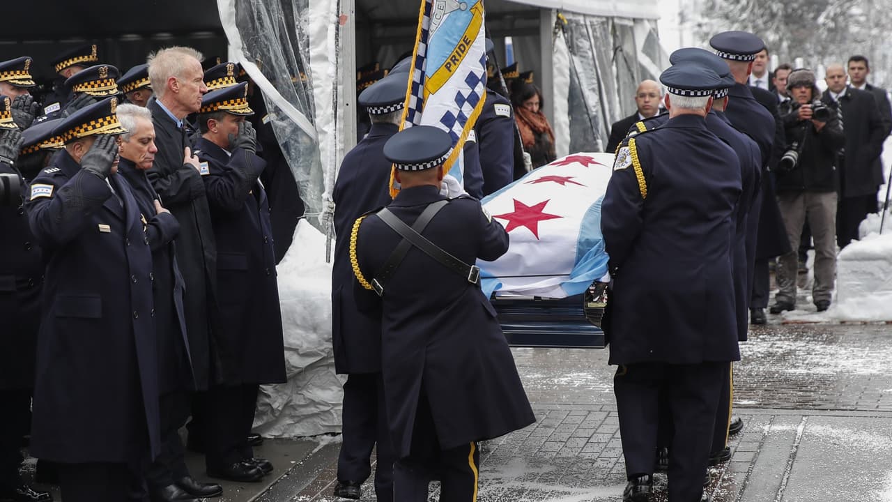 En el Santuario de Nuestra Señora de Guadalupe en Des Plaines se llevaron a cabo este lunes las honras fúnebres del oficial Samuel Jiménez, quien perdió la vida en cumplimiento de su deber. A la ceremonia, que fue presidida por el cardenal Blase Cupich, asistieron cientos de uniformados, familiares, amigos y políticos.