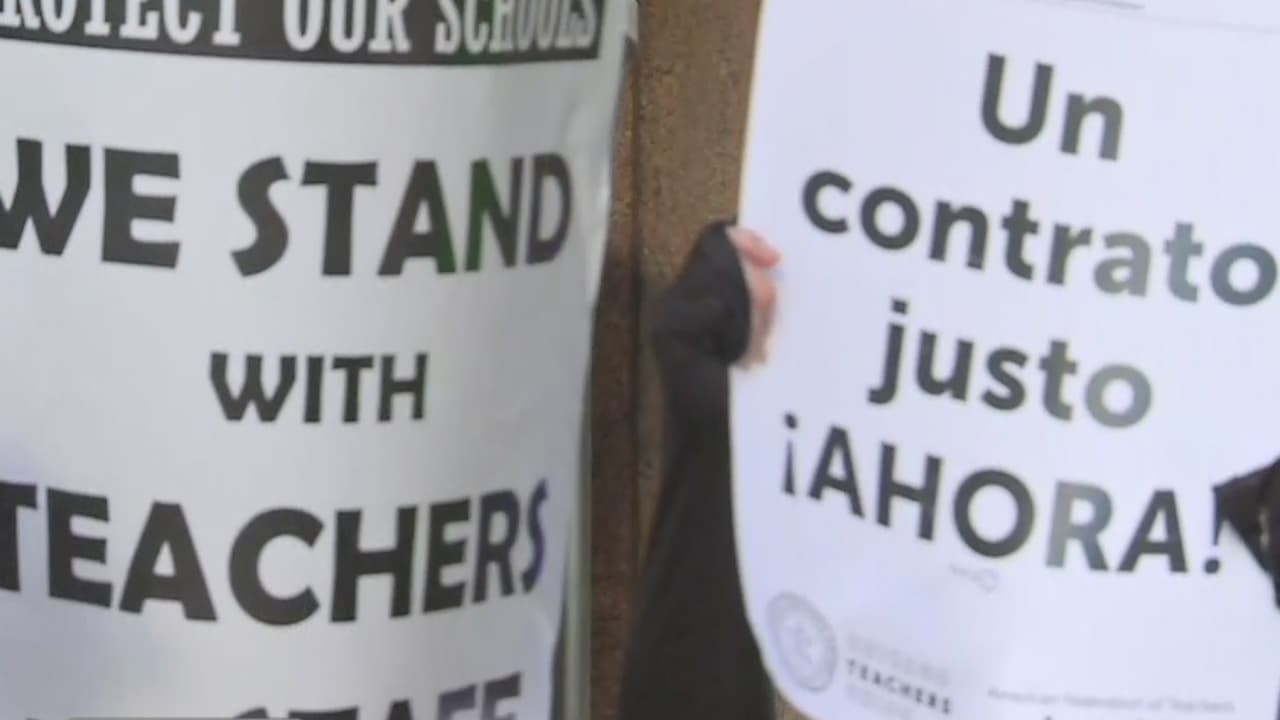 Con la amenaza de irse a huelga, maestros de varias escuelas charter en Chicago protestan por mejoras laborales