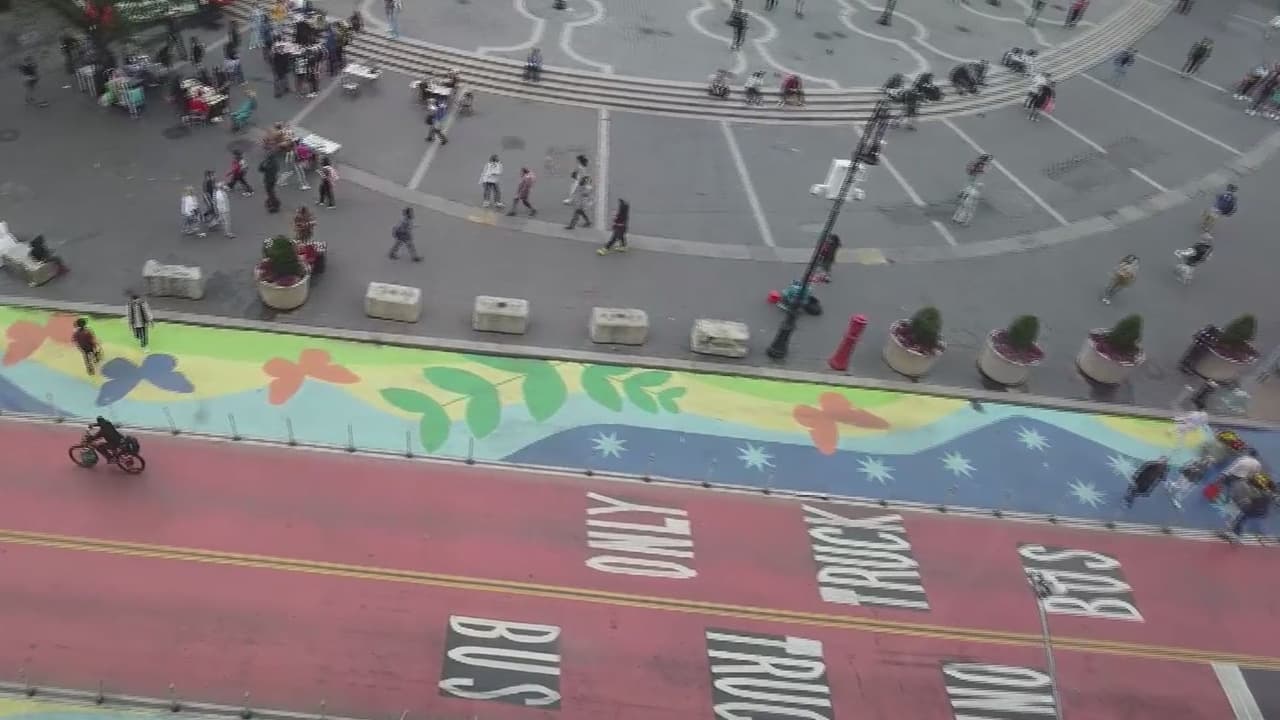Con más de 80 galones de pintura y la colaboración de casi 100 voluntarios, la artista española Vanesa Álvarez plasmó en las calles de Union Square un mural de casi 7,500 pies cuadrados con el que busca crear conciencia sobre el cambio climático. La obra de arte hace parte de una convocatoria hecha por el programa de arte del Departamento de Transporte de nueva York.