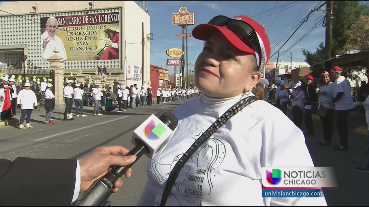 Con una cadena humana y pidiendo por los migrantes reciben al papa en Cd Juárez