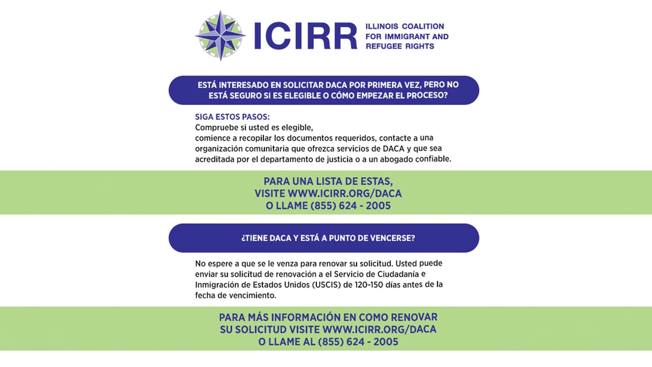 Usted puede enviar su solicitud de renovación a el Servicio de Ciudadanía e Inmigración de Estados Unidos (USCIS) de 120-150 días antes de la fecha de vencimiento. Para más información en como renovar isite www.icirr.org/daca o llame al (855) 624 - 2005.
