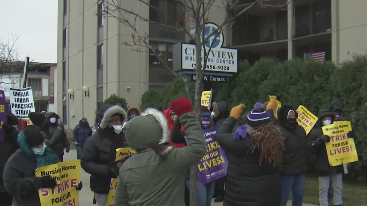 Trabajadores de 11 hogares de ancianos ubicados en el área de Chicago se reunieron este lunes en frente del asilo City View Multicare Center, en el que se han registrado al menos 250 contagios con coronavirus y 16 muertes, para reclamar por mejores sueldos, un bono por el riesgo que representa su labor en medio de la pandemia y más equipos de protección personal. Esta es su segunda semana de huelga.