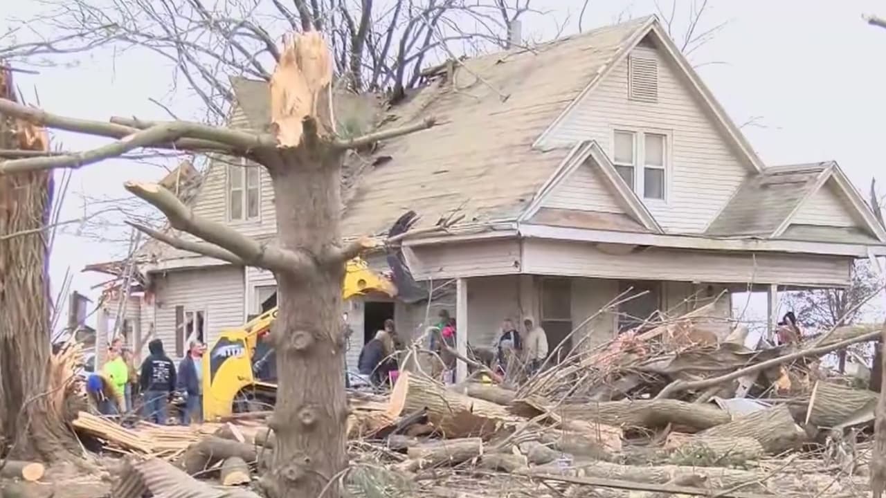 Continúan las labores de limpieza en la zona devastada por varios tornados en Illinois