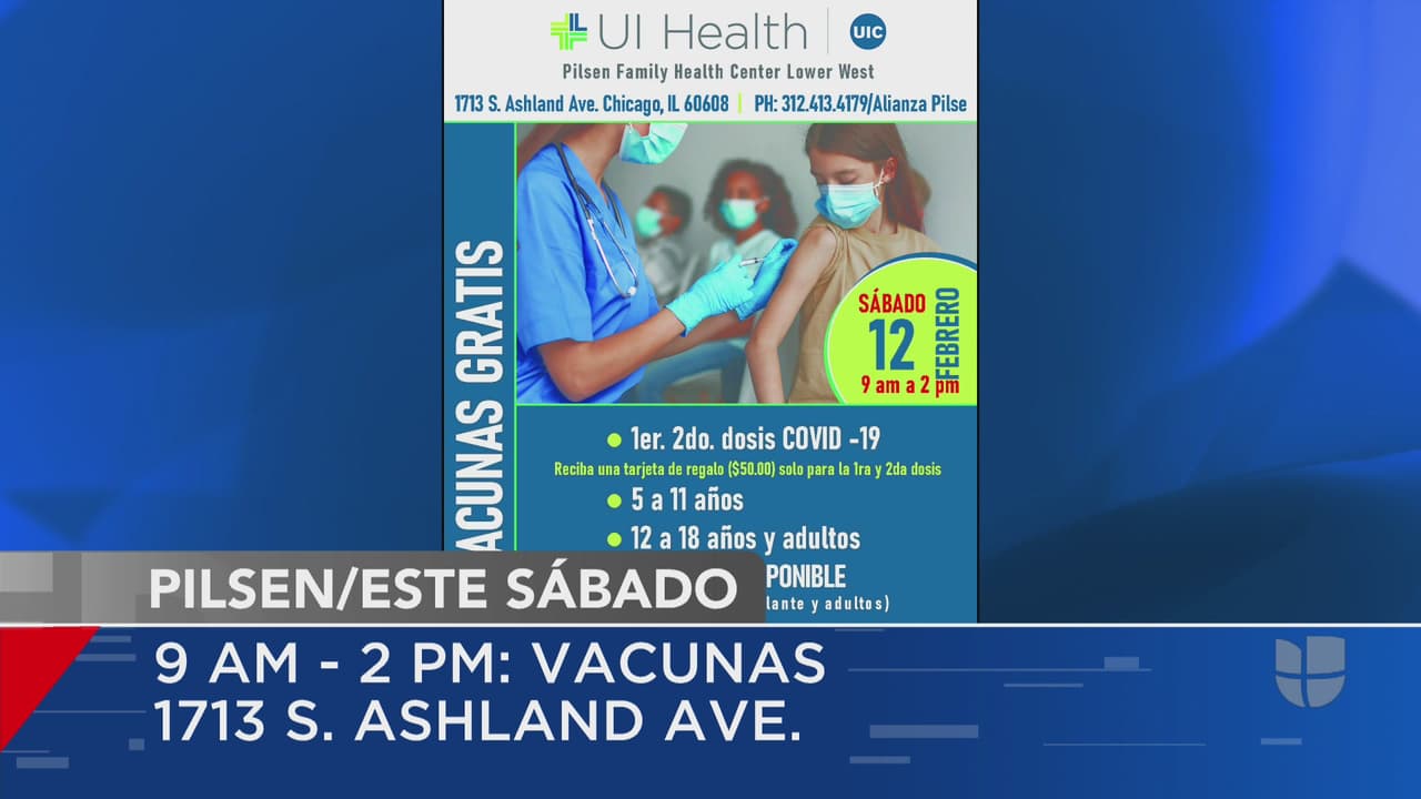 Un evento de vacunación se llevará a cabo este sábado en Pilsen. En el evento se aplican desde primeras dosis hasta refuerzos y no sólo es gratuito, sino que quienes se vacunen son elegibles para recibir una tarjeta de regalo de 50 dólares.