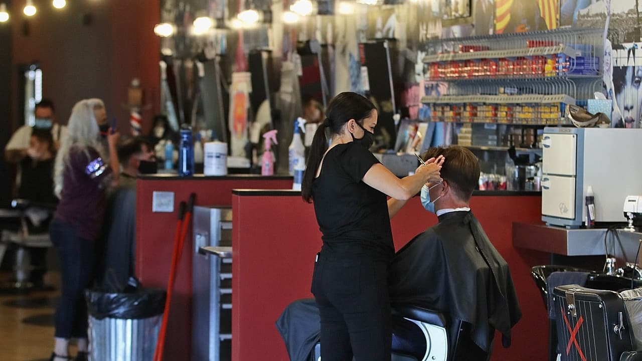 Luego de haber pedido cita previa, Carlos entra al establecimiento con su mascarilla, se lava las manos y Karina comienza con el corte de cabello. La estilista hace su labor, recibe el pago en tarjeta y luego desinfecta sus equipos de trabajo. Tal como este local en Aurora, comenzaron a funcionar otros negocios en el estado.