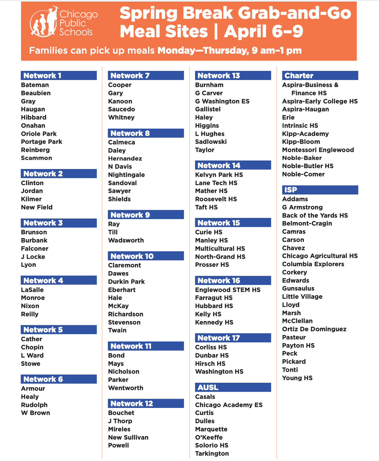 CPS continuará dando comidas gratuitas durante las vacaciones de primavera, pero los sitios de recolección se consolidaron