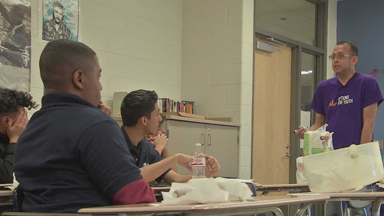 Estudiantes de Little Village Academy discuten durante 60 minutos y guiados por el maestro Luciano Medellín, del programa piloto Options for Youth, sobre el verdadero significado de ser hombres. La oleada de acusaciones en Estados Unidos por acoso y abuso sexual también forma parte de los análisis.