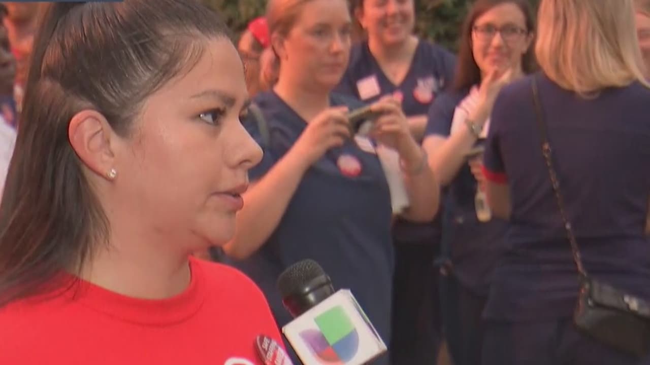 Decenas de enfermeros llegan al hospital de la Universidad de Chicago para iniciar su paro laboral