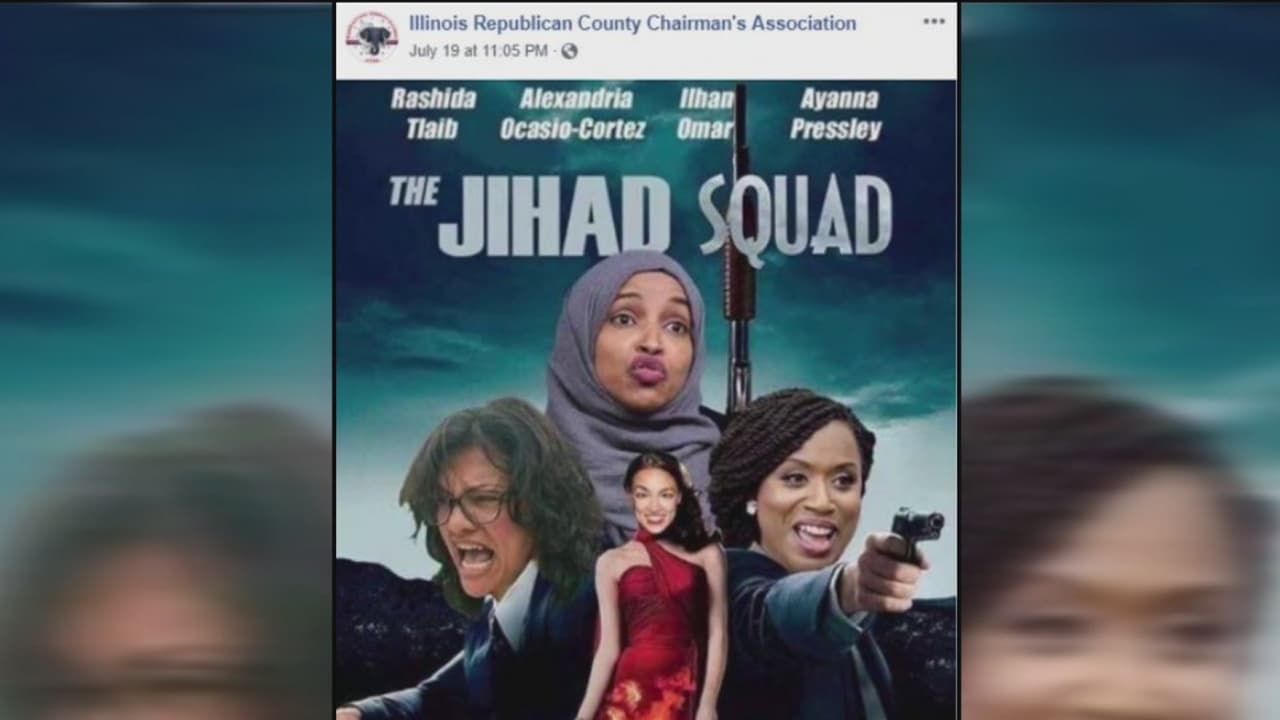 Esto sucedió días después de que una página republicana de Illinois compartiera un cartel en su página de Facebook que mostraba a cuatro congresistas demócratas como "Escuadrón Jihad".