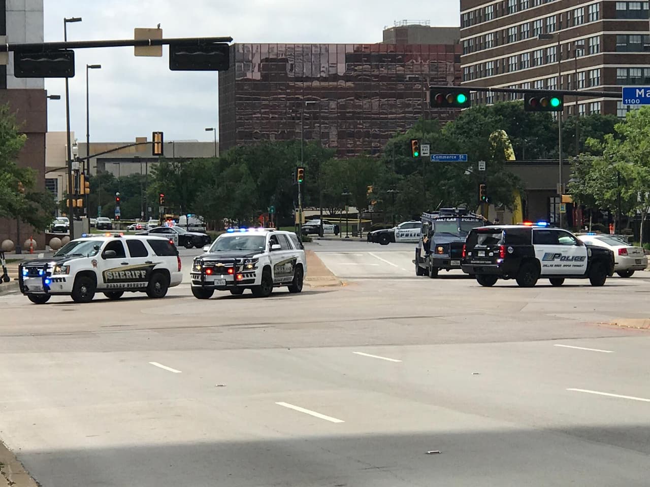 Según el reporte de la policía dos oficiales confrontaron a un hombre. Este le disparó a los oficiales y el sospechoso fue herido de bala y luego arrestado. Los policías y el delincuente se encuentran fuera de peligro después del incidente.