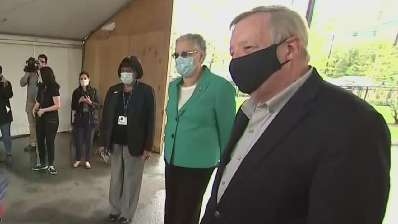 Dick Durbin y Toni Preckwinkle visitan centro de pruebas de detección del coronavirus en el Hospital Stroger