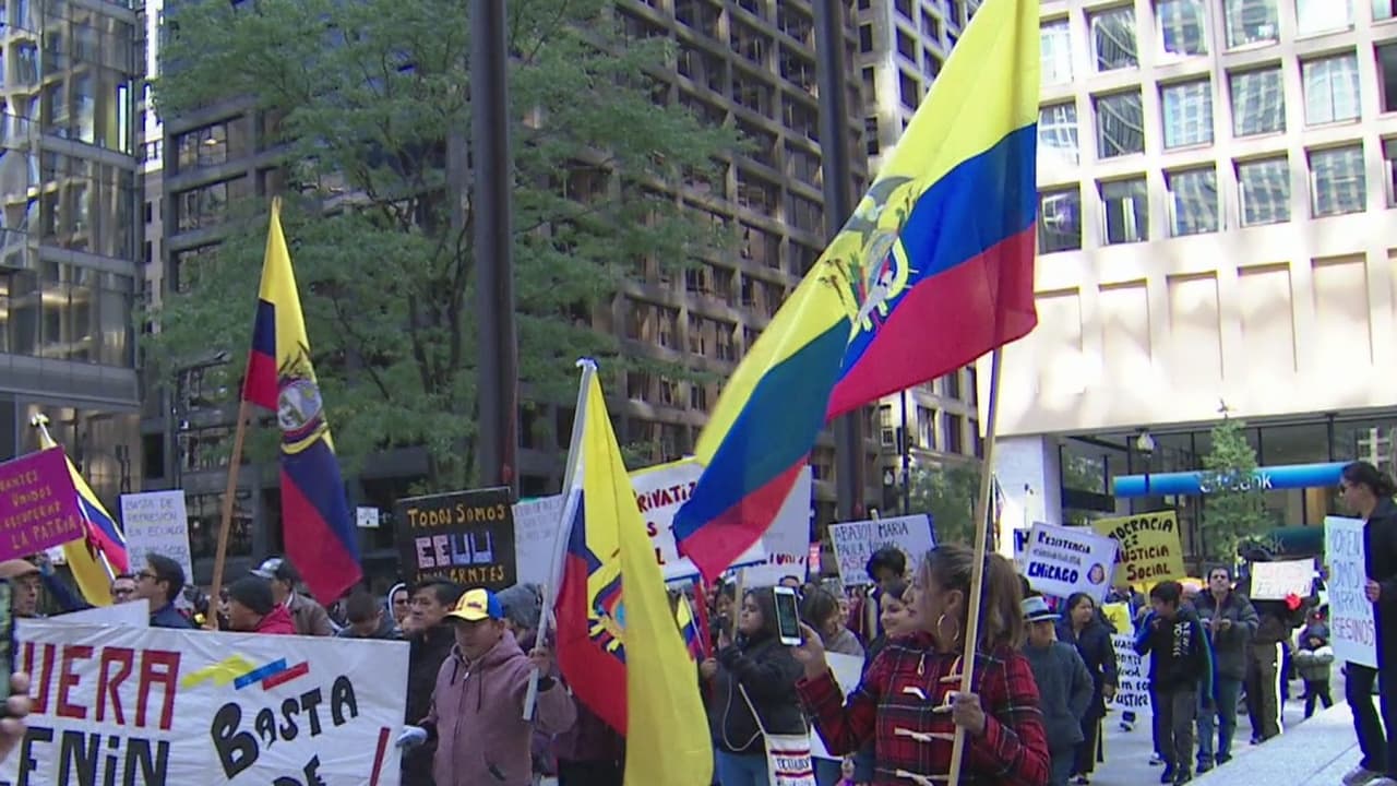 Ecuatorianos en Chicago protestan en apoyo a las comunidades indígenas de su país