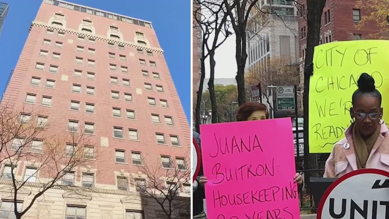Wilfredo Guiracocha, su esposa y otros 14 empleados del hotel Selina, ubicado en el centro de Chicago, se quedarán sin trabajo a partir de este viernes. El edificio será convertido en un albergue de la ciudad de cara a la llegada del invierno. Los empleados afectados se manifestaron en frente del hotel.