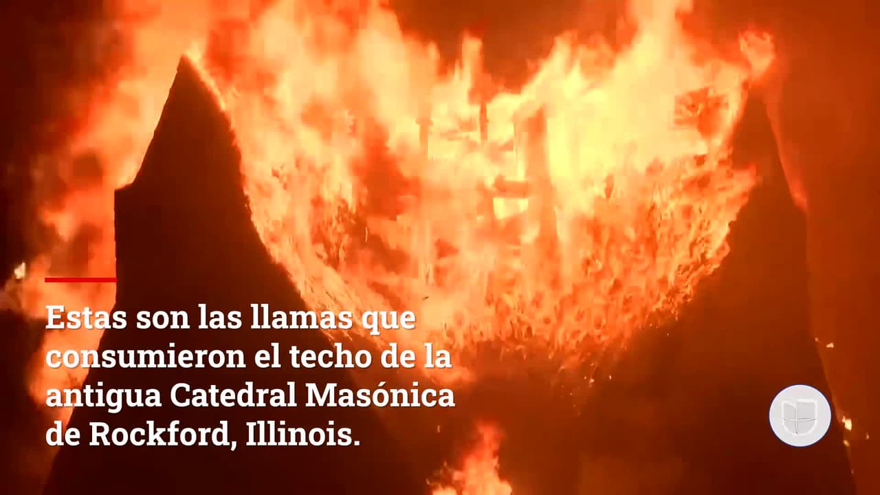 CHICAGO, Illlinois. – Estas son las imágenes de estas intensas y voraces llamas que consumieron el techo de la antigua Catedral Masónica de Rockford, Illinois.