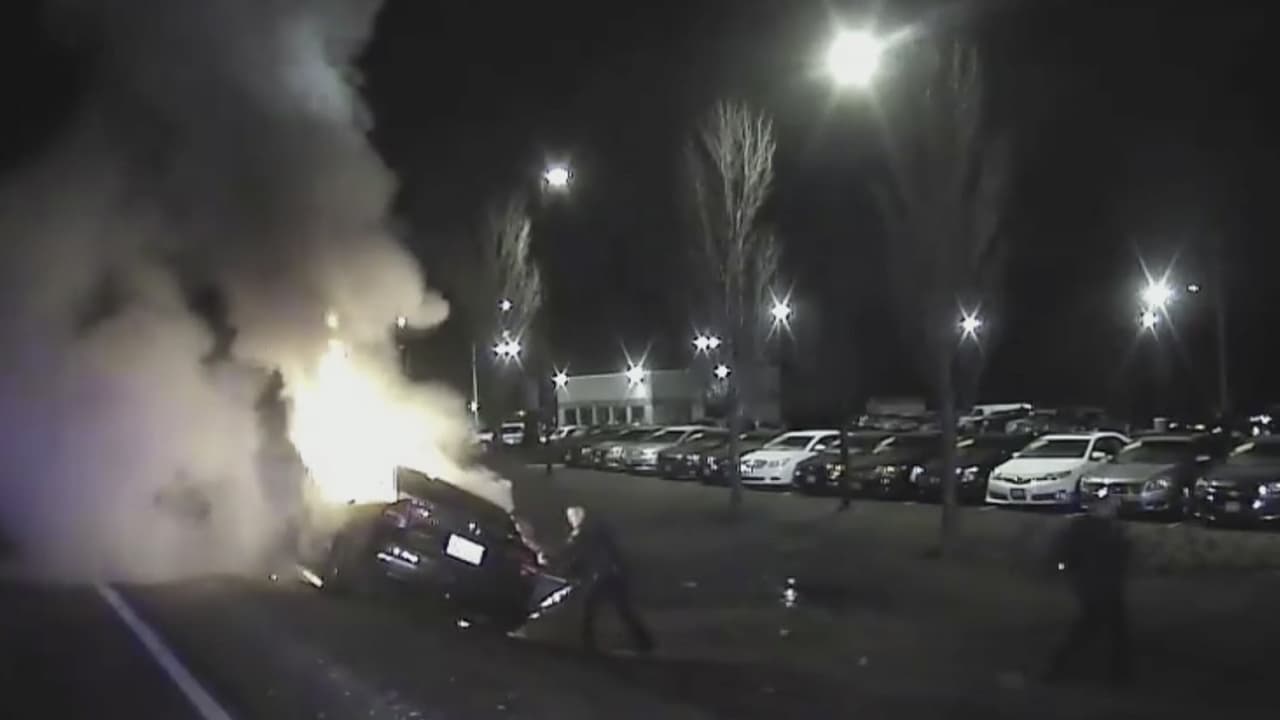 En video: Testigos de un accidente rescatan a un hombre de un vehículo en llamas