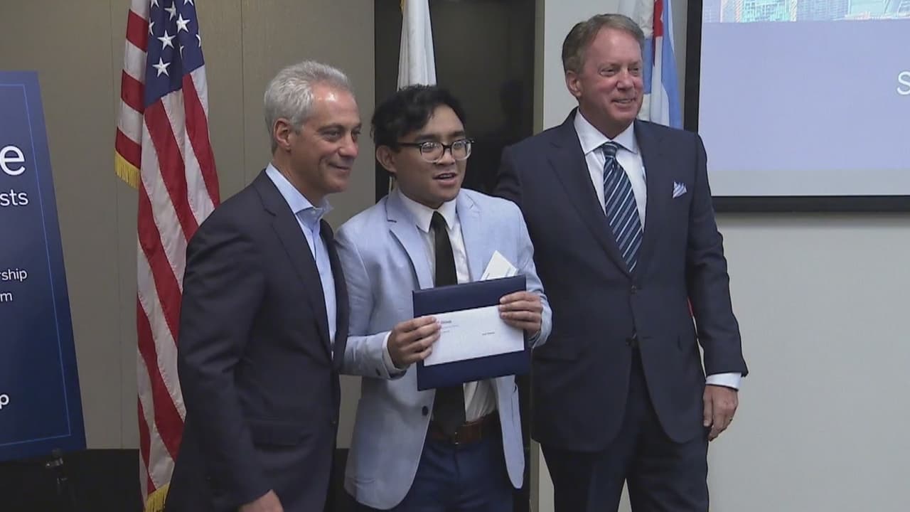 El alcalde Rahm Emanuel encabezó la ceremonia de adjudicación de asistencia financiera para continuar con los estudios superiores en una universidad. La llamada beca 'Chicago Stars' también está disponible para los estudiantes indocumentados.