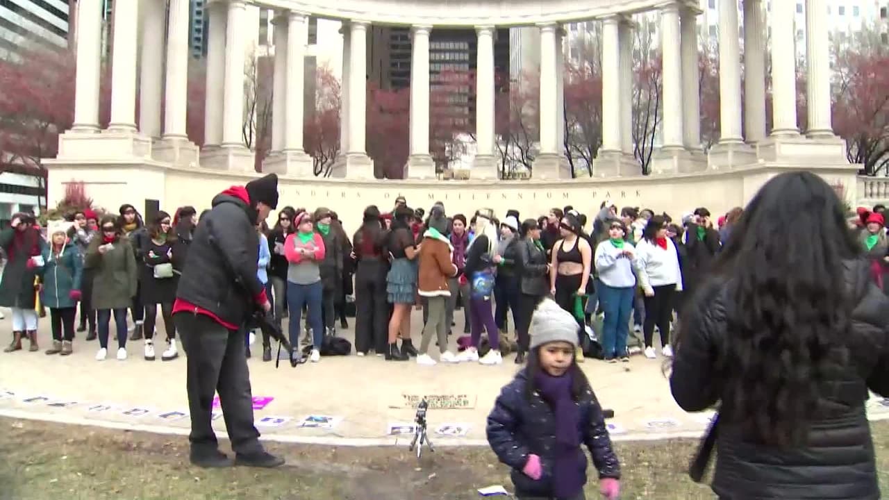 Docenas de mujeres llegaron a Chicago, en el Millenium Park, el sábado para interpretar esta canción para crear conciencia a la violencia contra mujeres en Chicago.