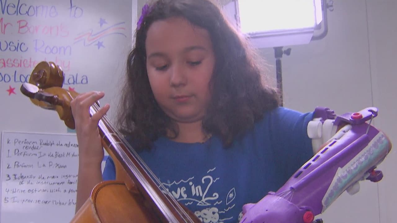 Jeanine Woodman, docente de escuela la escuela Little Fort, encontró los planos gratis en un sitio en internet, los adaptó a la talla de la alumna y los mandó a imprimir en 3D. Tatiana Coletta, la beneficiada, ahora puede tocar mejor su instrumento musical.