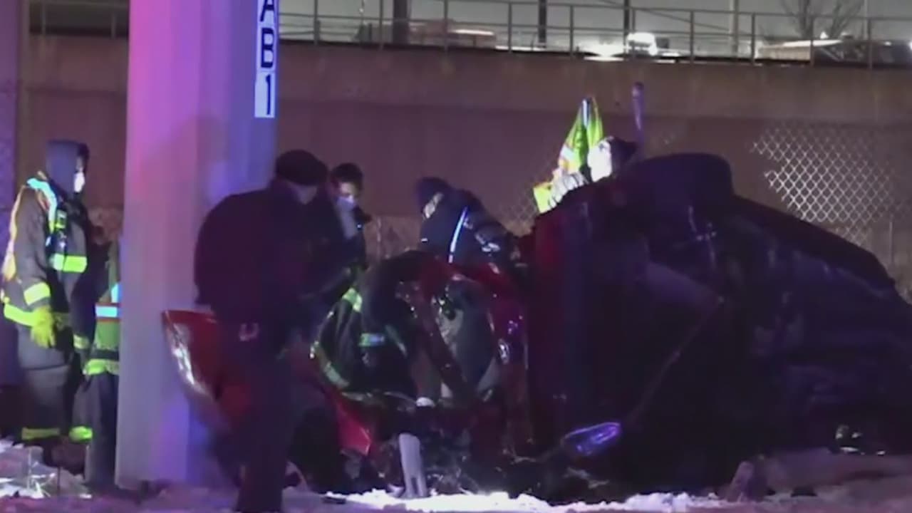 El reporte preliminar de las autoridades indica que el conductor estaba manejando a una velocidad superior a la que debía en medio de las condiciones invernales, lo que habría ocasionado que cayera de un puente ubicado a una altura de 43 pies aproximadamente. Dos personas fallecieron y dos más se encuentran en condición crítica en el hospital Stroger.