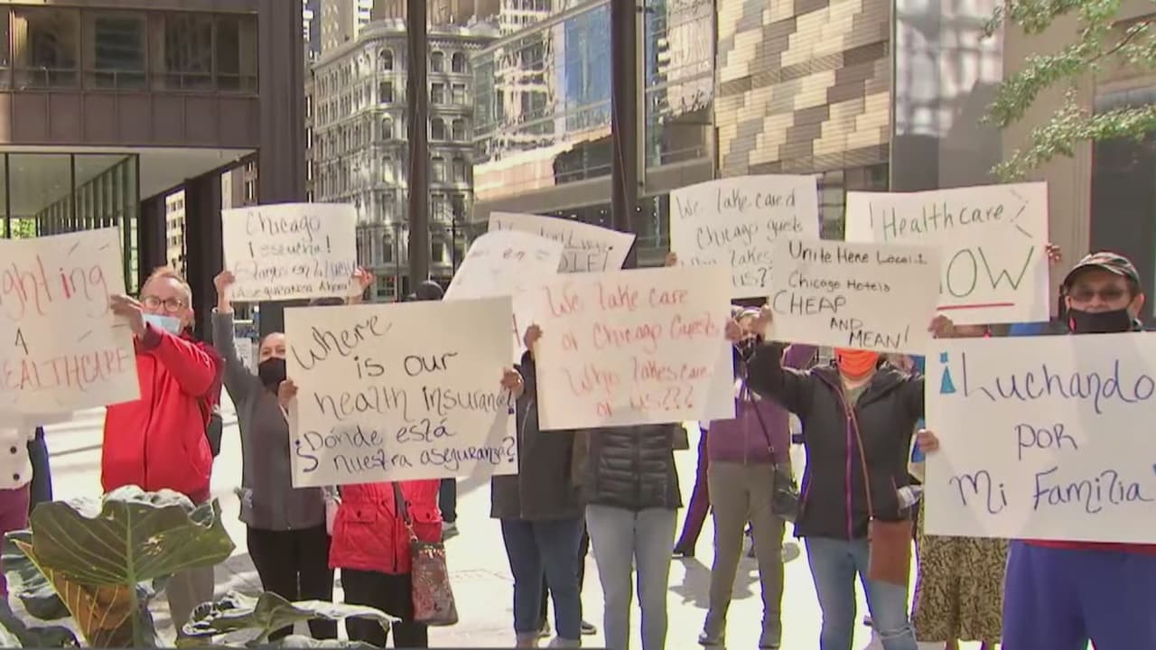 Exempleados de la industria hotelera en Chicago protestan para conservar sus seguros médicos en tiempos de pandemia