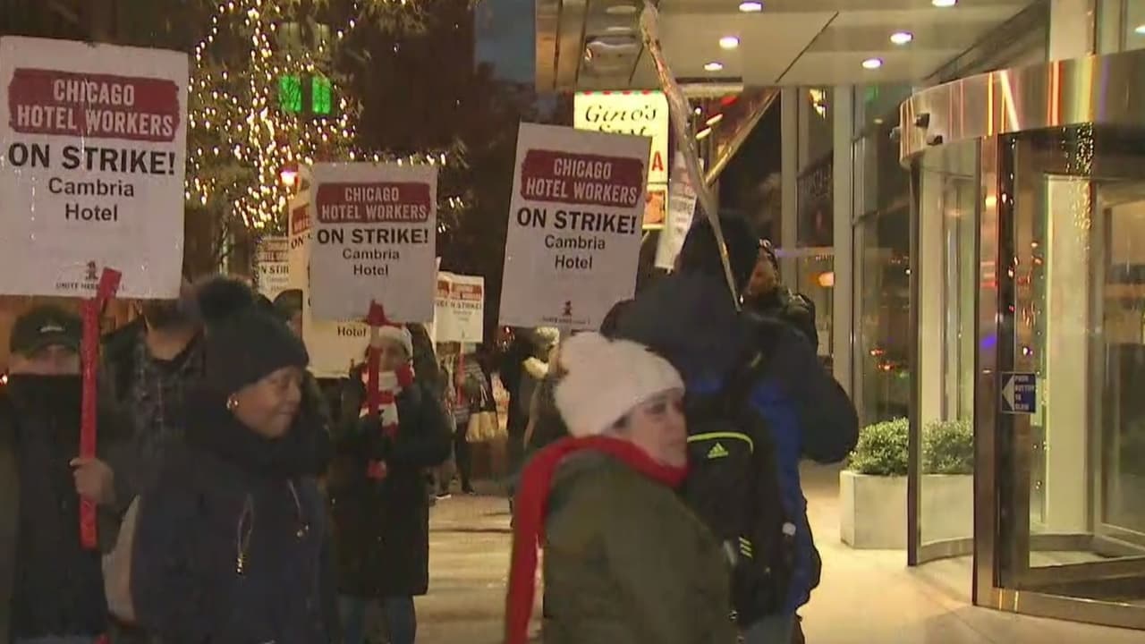Exempleados de un hotel que llevan 100 días en huelga protestan en el centro de Chicago