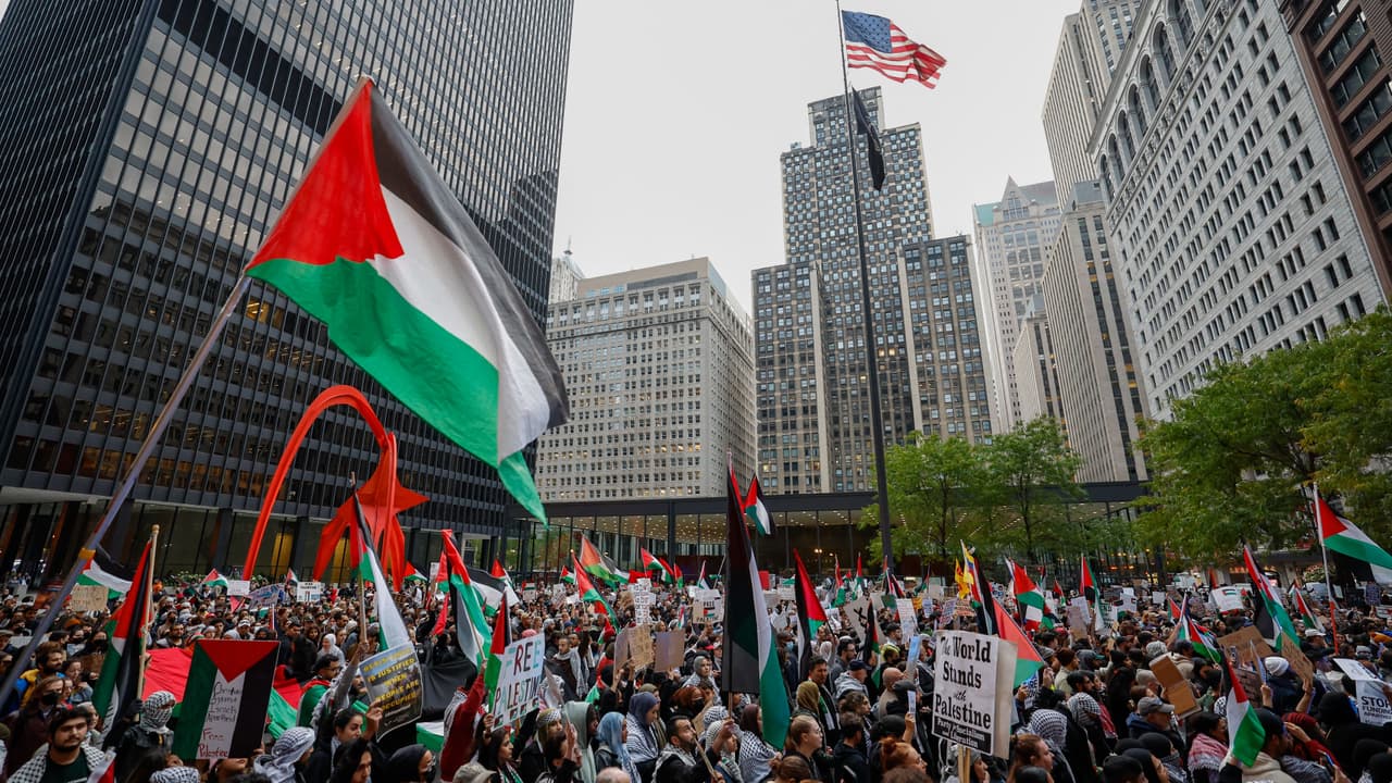Con banderas y arengas, cientos de personas se congregaron este miércoles en una manifestación en apoyo a la comunidad palestina. Durante la protesta, los participantes exigieron un alto al fuego en el conflicto entre Israel y Hamás. “Queremos paz, no queremos más violencia; queremos que Israel y Palestina estén unidos”, afirma Rania Fadhel, quien asistió a la movilización.