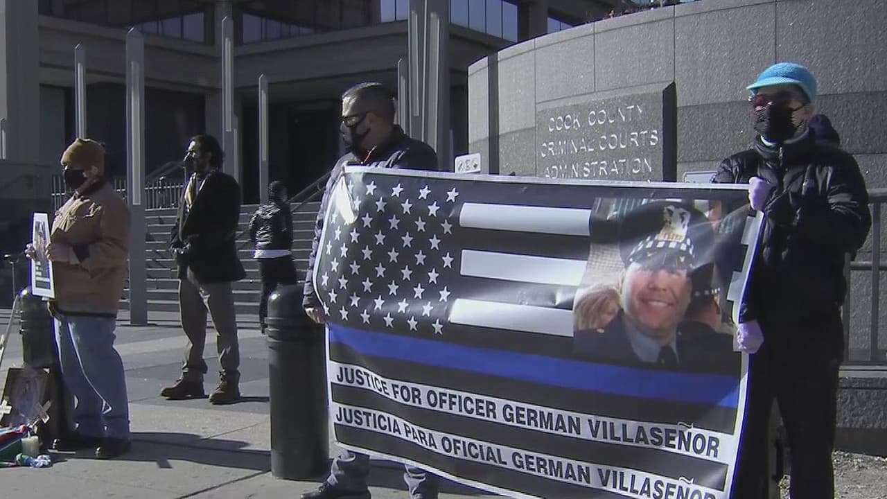 Familiares de policía de Chicago asesinado por su esposa, al parecer de forma accidental, llevan a cabo una protesta
